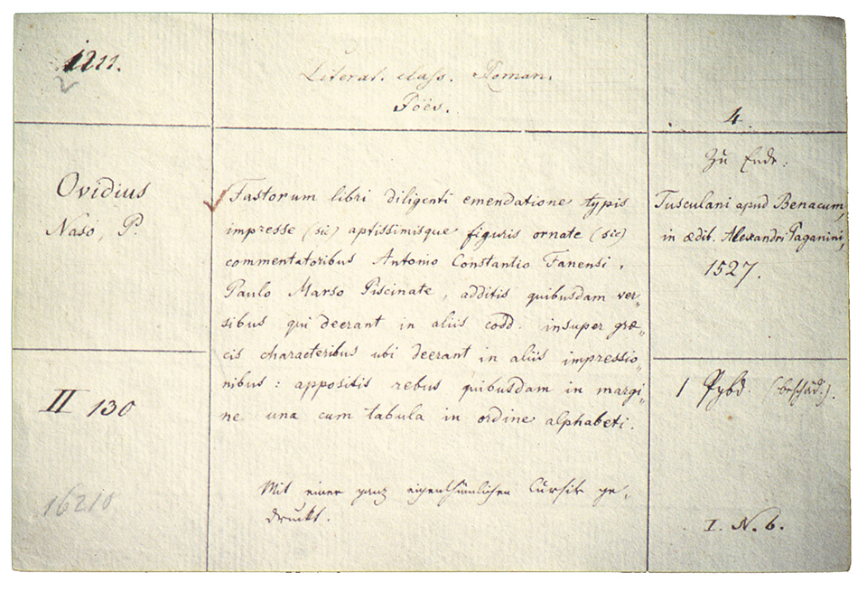 The catalogue listing that Matija Čop produced for the Lyceum Library.