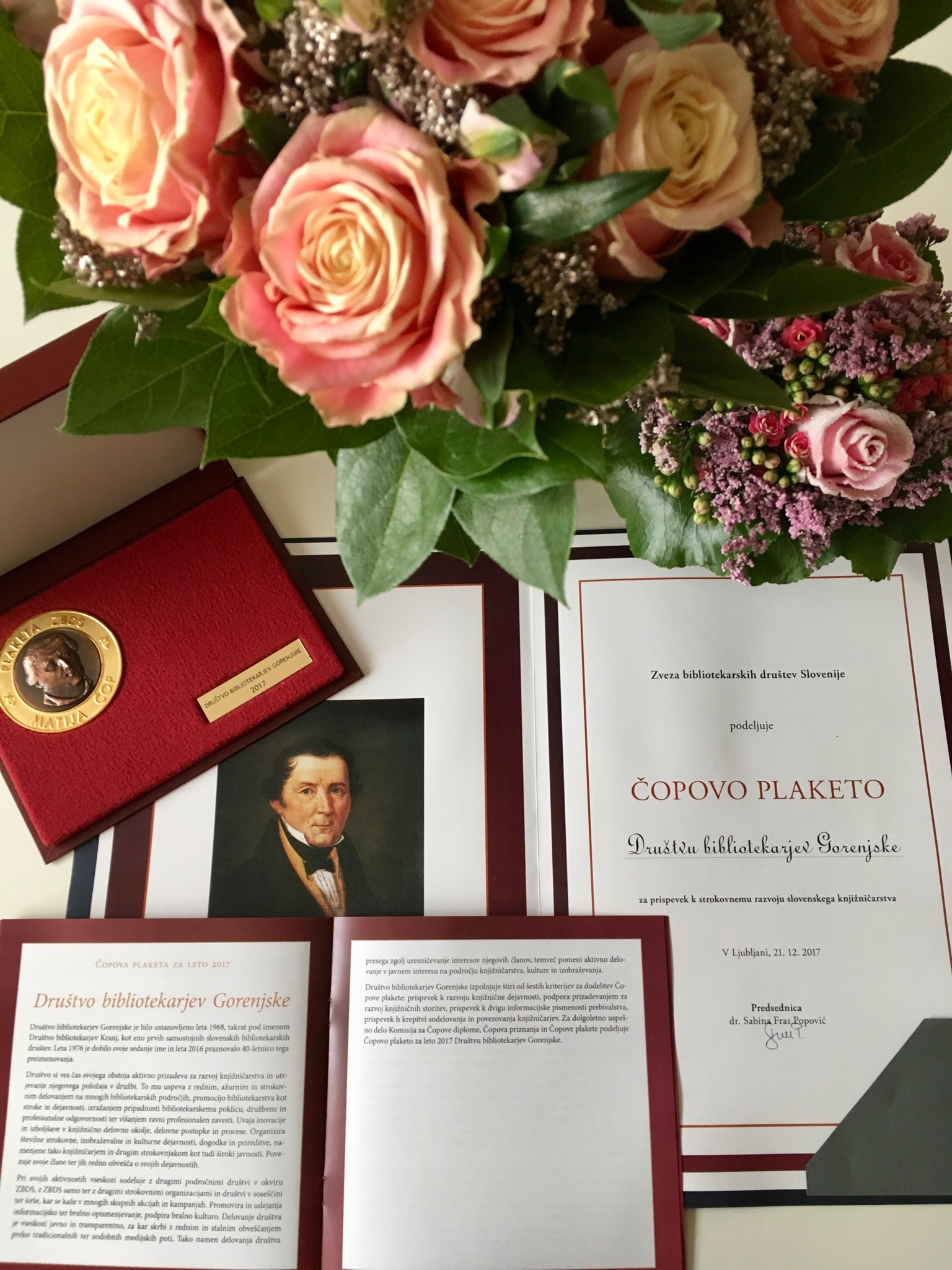 The highest state awards in the field of librarianship – the Čop Diploma and the Čop Award – are named after Matija Čop, the first Slovenian librarian. The Slovenian Library Association awards them for exceptional success in the field of librarianship.